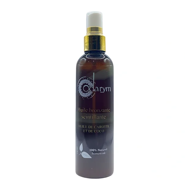 L’huile bronzante scintillante Odarym en flacon de 100 ml est une huile corporelle aux reflets dorés, pensée pour accompagner les journées ensoleillées. Composée d’huiles végétales naturelles et enrichie de micas d’origine minérale, elle illumine la peau tout en la nourrissant. Sa texture légère pénètre rapidement sans coller, idéale à appliquer avant ou après une exposition solaire (hors visage). Cette huile est à utiliser sur peau propre et sèche, pour un fini lumineux sur les bras, jambes ou décolleté. Son parfum doux évoque l’été, sans contenir de parfum synthétique. Ne remplace pas une protection solaire. Ce soin naturel complète les routines estivales, pour un effet satiné subtil au quotidien. Disponible en ligne sur notre boutique bio au Maroc, en flacon pratique de 100 ml.